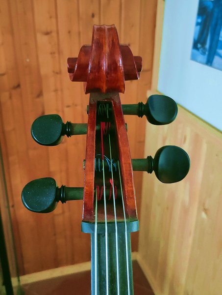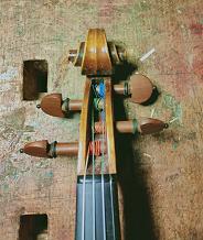 Violino modello Stradivari. E' il fratello del precedente. La vernice antichizzata tira un po' più sul rosso. Corde Dominante. Sonorita interessante (non mi piace dire buona perche dipende dai gusti)