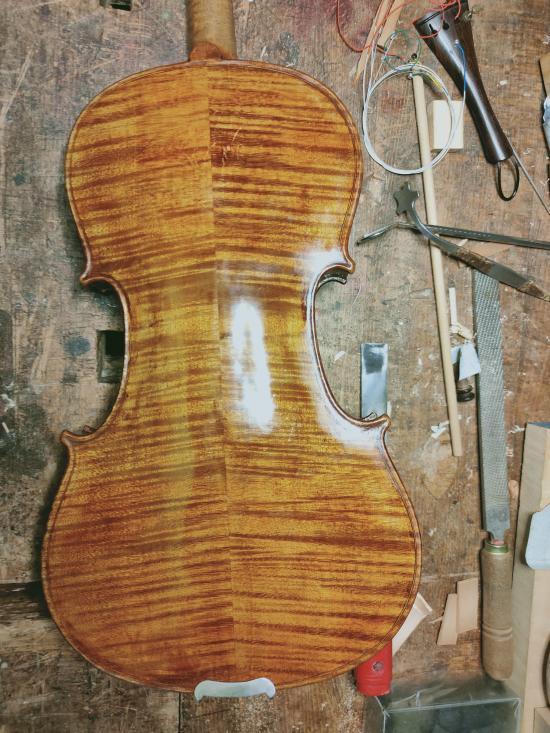 Si può provare presso la bottega. Il violino è stato ultimato a marzo 2015.