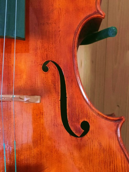 Violino nuovo. La vernice è stata antichizzata mettendo in risalto la bellezza del fondo in particolare. La sua sonorità calda e profonda è sorprendente. Violino molto facile da suonare. Monta delle corde Savarez