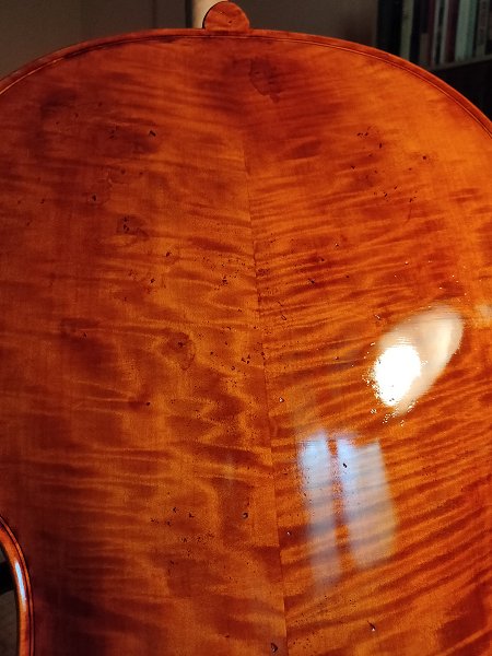 Violoncello con la vernice leggermente antichizzata. Strumento molto bello con la